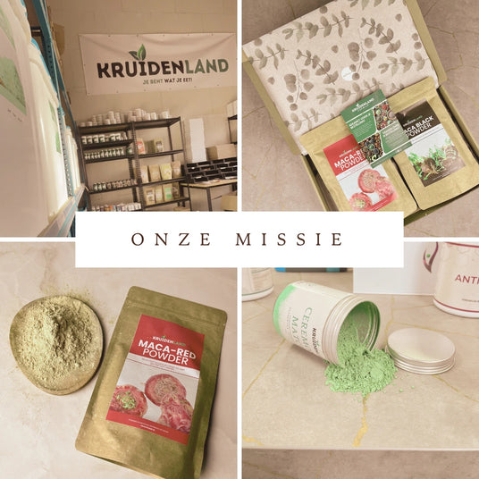 Bei Kruidenland gehen Qualität und Leidenschaft Hand in Hand. Alle unsere Superfoods werden sorgfältig ausgewählt und stammen aus zuverlässigen und nachhaltigen Quellen. Unsere Produkte sind rein, nahrhaft und eine perfekte Ergänzung zu einem bewussten Lebensstil. Wir legen Wert auf Transparenz und teilen gerne unser Wissen über die Vorteile und Einsatzmöglichkeiten unserer Produkte.